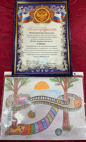 После подведения итогов конкурса была организована выставка работ в центре села. Местные жители, пришедшие на мероприятие, могли увидеть, какие идеи воплощают детские мечты. Это собрало много людей, и атмосфера радости и единства чувствовалась во всем. По итогам выставки выбрали самый вдохновляющий рисунок, а его автор получил возможность поучаствовать в дальнейшей разработке проекта площадки. По итогам конкурса участники были награждены грамотами за 1,2 и 3 место. На основе рисунков детей был разработан проект, включающий различные игровые элементы, такие как горки, качели и песочницы. Теперь село Барабаново готовится к реализации своей мечты — создать современную и безопасную детскую площадку для всех детей в рамках проекта «Крым как мы хотим 2025»